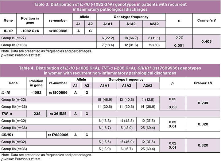 Thus, the immunogenetic mechanisms underlying the recurrence of pathological vaginal discharges remain inadequately studied and necessitate a comprehensive approach that considers both clinical and genetic factors influencing the immune response to microbial invasion.