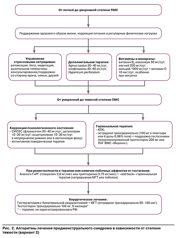 В январе 2018 г. на сайте «Британского медицинского журнала» Национальной ассоциацией по ПМС (NAPS–National Association for Premenstrual Syndrome) была опубликована предварительная версия рекомендаций, посвященная основным дифференцированным подходам к коррекции ПМС (www.groupe.bmj. com). В документе продемонстрирован широкий взгляд экспертов на заболевание с акцентом на недавние попытки глобального консенсуса установить его основные дефиниции (табл. 1, рис. 1, 2).