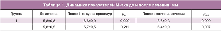 1. Table 1. Dynamics of M-echo indices before and after treatment, mm
